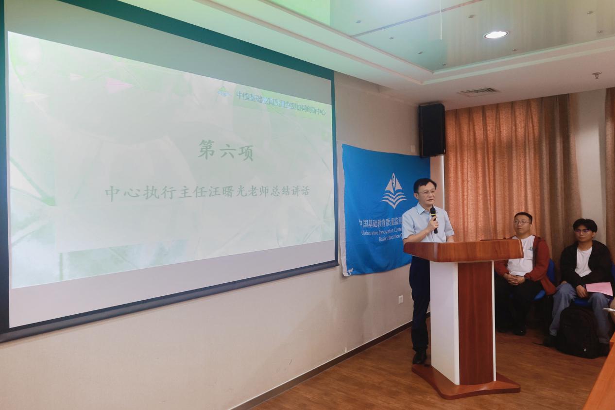开学典礼最后,汪曙光主任发表总结讲话。他首先代表协同中心全体师生向新同学表示热烈欢迎,并向支持同学们成长的父母亲友致以诚挚感谢。汪主任特别提到,今年是世界反法西斯战争胜利80周年,这段历史不仅铭刻着民族独立和世界和平的代价,也提醒青年学子要从历史中汲取智慧与力量,以青春之我,续写国家和民族的新篇章。结合学校“学为人师,行为世范”的校训与中心的发展历程,汪主任对新生提出三点希望:一是坚守理想,涵养家国情怀,将个人学术追求融入国家教育改革发展大局;二是勤学笃行,锤炼过硬本领,在科研与实践中勇于探索、敢于创新,成长为既有理论高度、又有实践深度的新时代人才;三是以德为先,践行师大精神,做有温度的研究者、有担当的教育者和有格局的开拓者。他勉励同学们铭记历史、不负韶华,把握学校和协同中心提供的优质平台,在科研与实践中不断收获知识厚度、人格温度与理想高度,努力成长为推动我国教育事业发展的中坚力量。